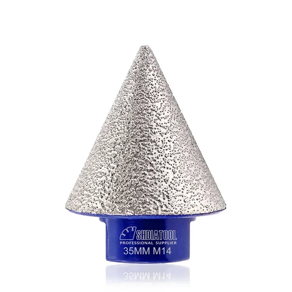 Dijamantska konusna kruna 35 mm M14 namenjena je za precizno faziranje, poliranje i oblikovanje ivica na staklu, keramici, porcelanu, granitu i mermeru. Zahvaljujući vakuum lemljenoj tehnologiji i dijamantskom zrnu granulacije #80, omogućava glatku i ravnomernu završnu obradu bez pucanja i krzanja materijala.
