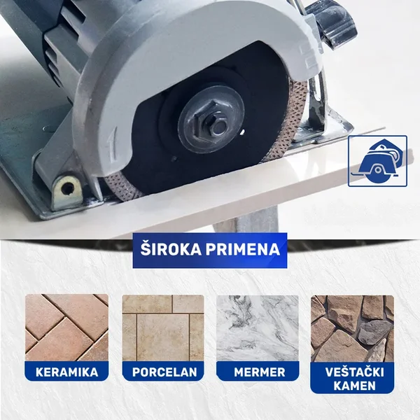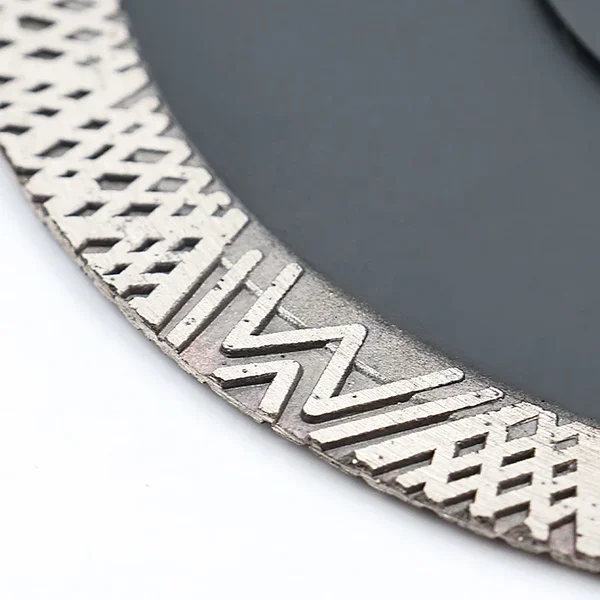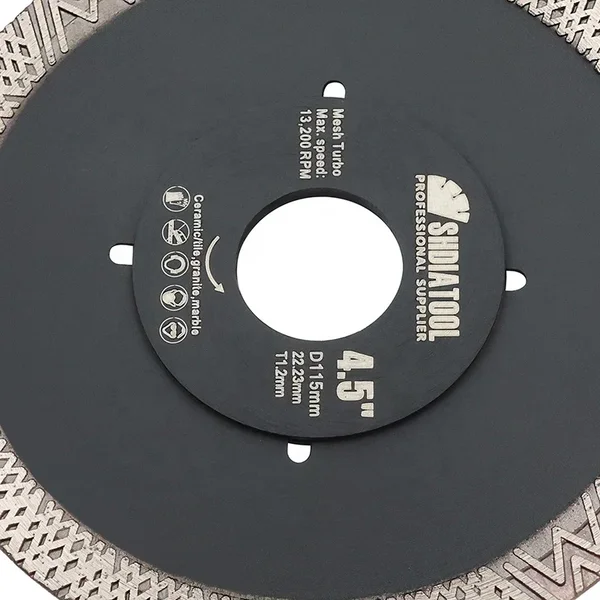 Mrežasti turbo obod omogućava efikasno izbacivanje materijala i stabilan rad, što daje bolju kontrolu tokom sečenja i smanjuje rizik od pucanja pločica.