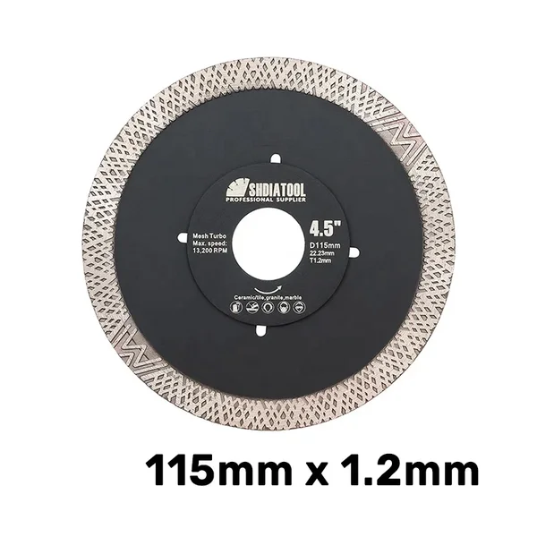 Mesh Turbo dijamantska ploča 115mm x 1.2mm namenjena je za čisto i precizno sečenje keramike, porcelana i kamena. Ultra tanak rez omogućava minimalno oštećenje ivica i savršen završni rezultat.