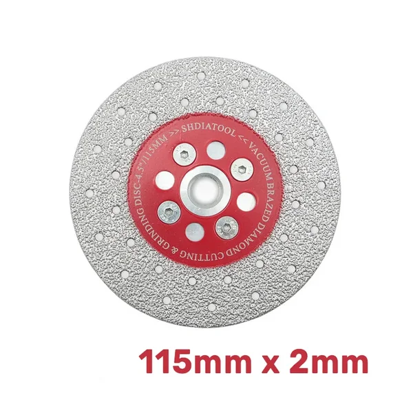 2u1 vakuum-brazirana dijamantska ploča 115mm omogućava brzo sečenje i agresivno brušenje kamena bez potrebe za promenom diska. Idealan izbor za rad sa granitom, mermerom, pločicama i betonom.