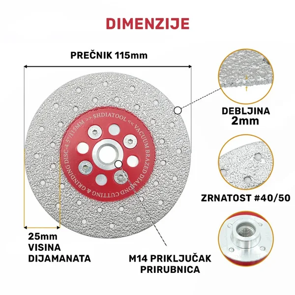 - Prečnik: 115 mm