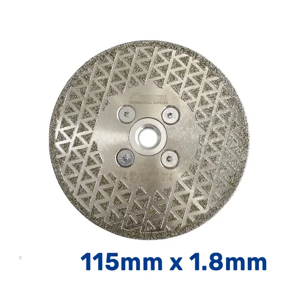 Dijamantska ploča Ø115 mm za sečenje i brušenje – elektroplatirana, dvostrano obložena, M14