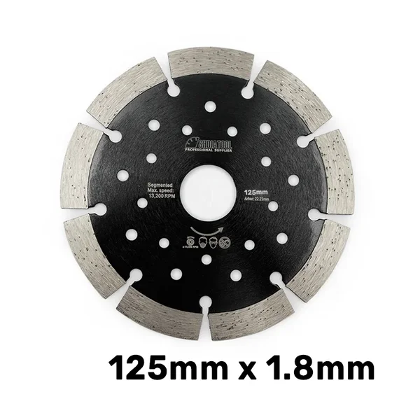 Dijamantska segmentna turbo ploča 125mm namenjena je za efikasno sečenje granita, mermera, kamena, betona, cigle i blokova. Zahvaljujući segmentnom turbo obodu omogućava brzo uklanjanje materijala uz stabilan i kontrolisan rez.