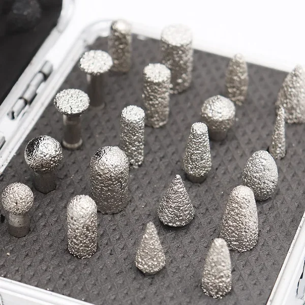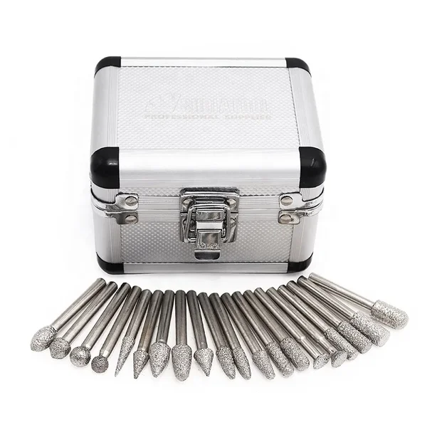 Profesionalni set 20 dijamantskih nastavaka 6mm namenjen je za brušenje, oblikovanje i graviranje kamena, betona i drugih tvrdih materijala. Ovaj set dijamantskih nastavaka za brušenje 6mm omogućava brzo skidanje materijala i preciznu kontrolu pri radu.