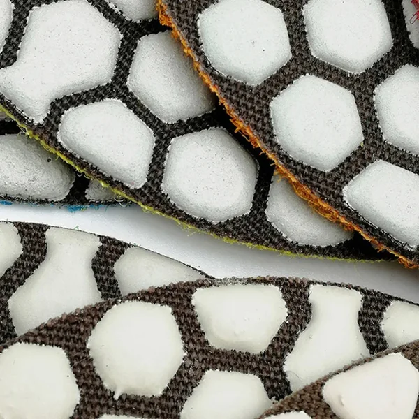 Zahvaljujući dijamantskim segmentima raspoređenim u heksagonalnom (saćastom) dizajnu, pad omogućava efikasan kontakt sa površinom i bolje odvođenje prašine. Fleksibilna konstrukcija omogućava ravnomernu obradu i na ravnim i na blago zakrivljenim površinama.