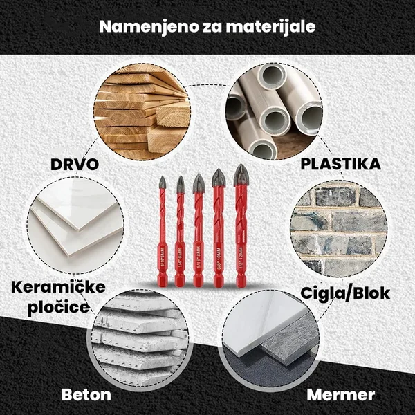 - Set burgija za pločice 5–12 mm sa krstastim vrhom